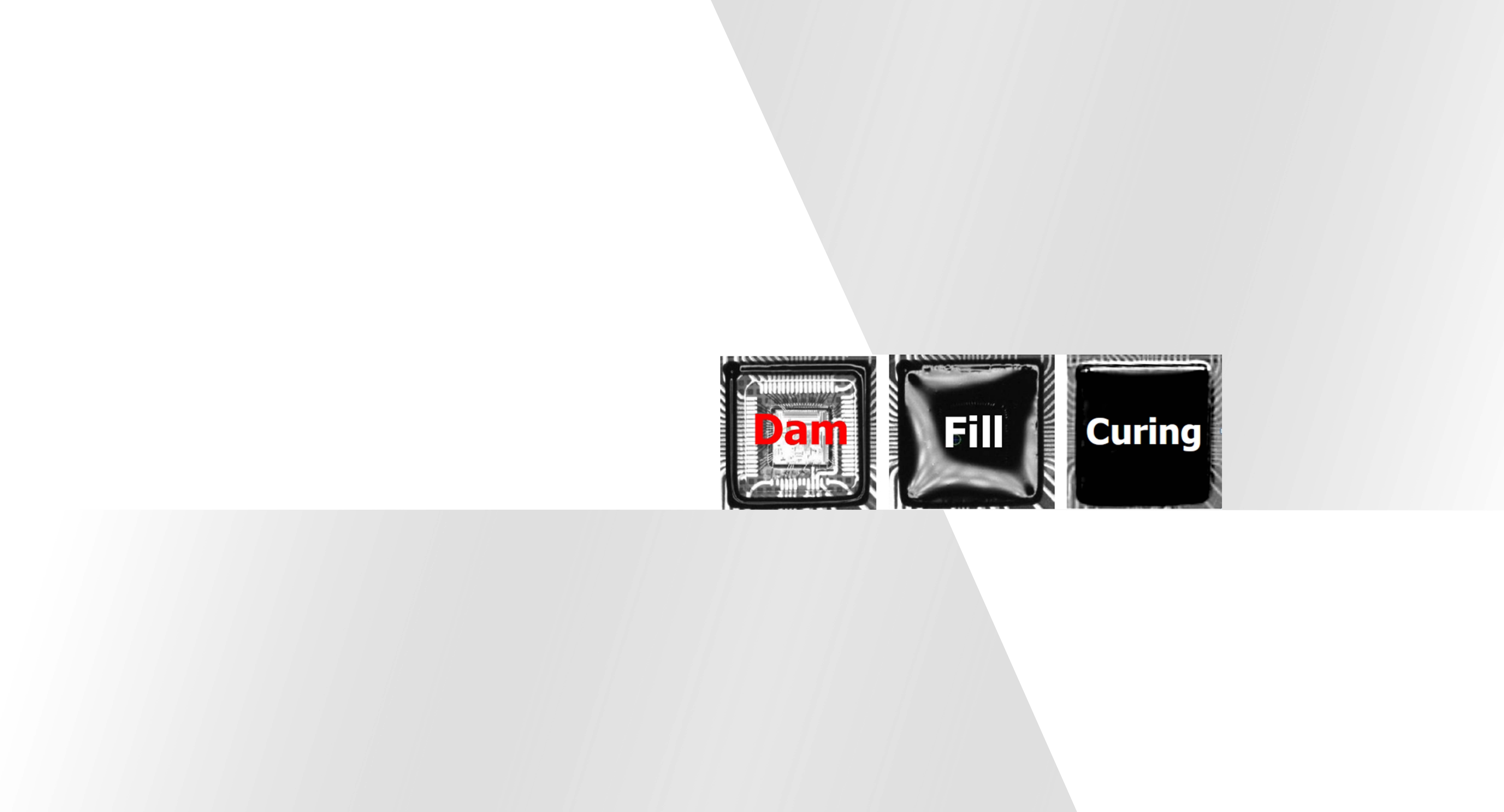Dam工艺:使用用高粘度胶水,形成围墙,限制Fill胶水的流动区域。Dam胶水高度至少高于 Wire bond线。胶水粘度较高,一般采用接触式点胶,如针筒点胶或螺杆阀点胶;